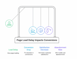 - A 1-second delay in page load can reduce conversion rates by 7% and decrease customer satisfaction by 16%. (Aberdeen Group, “The Performance of Web Applications”, 2017)